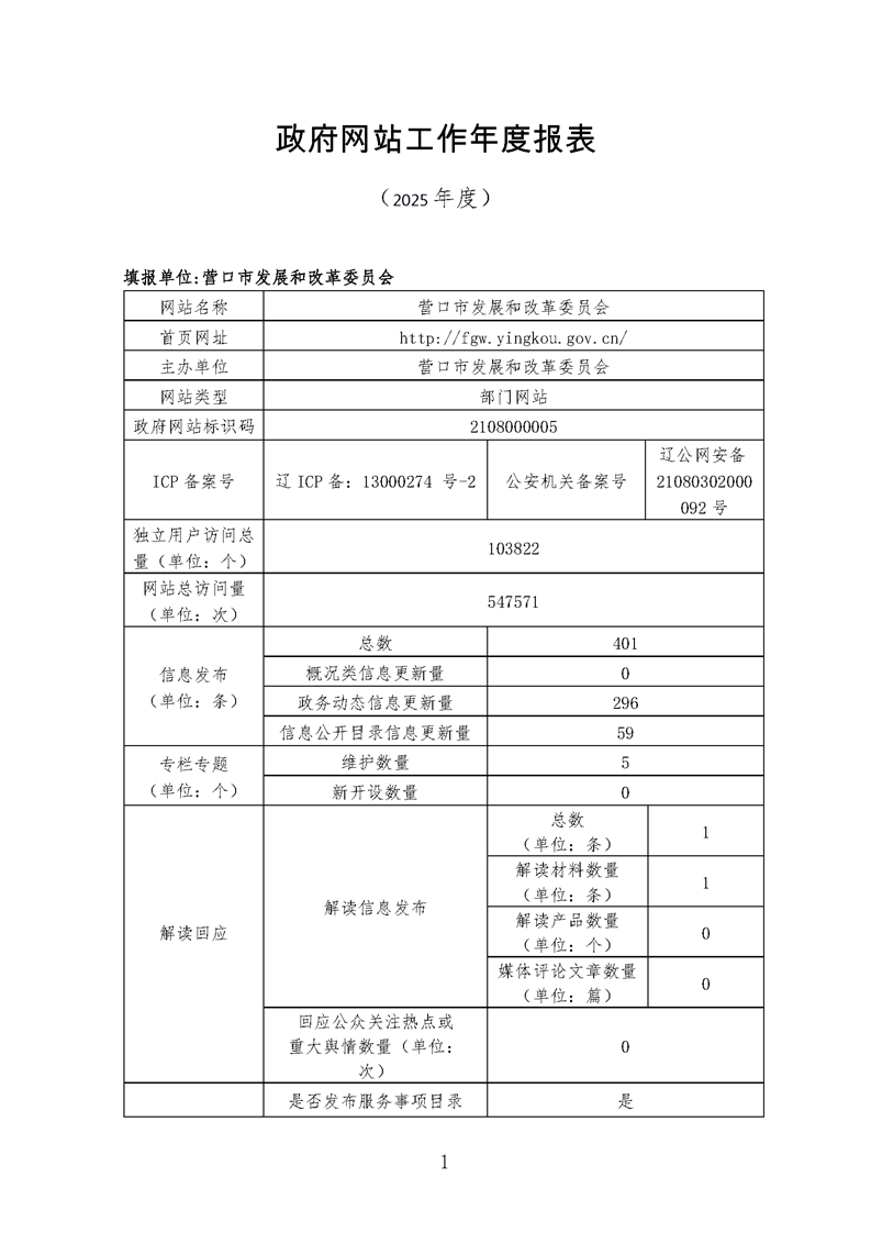 营口市发展和改革委员会政府网站工作年度报表(2025年度)
